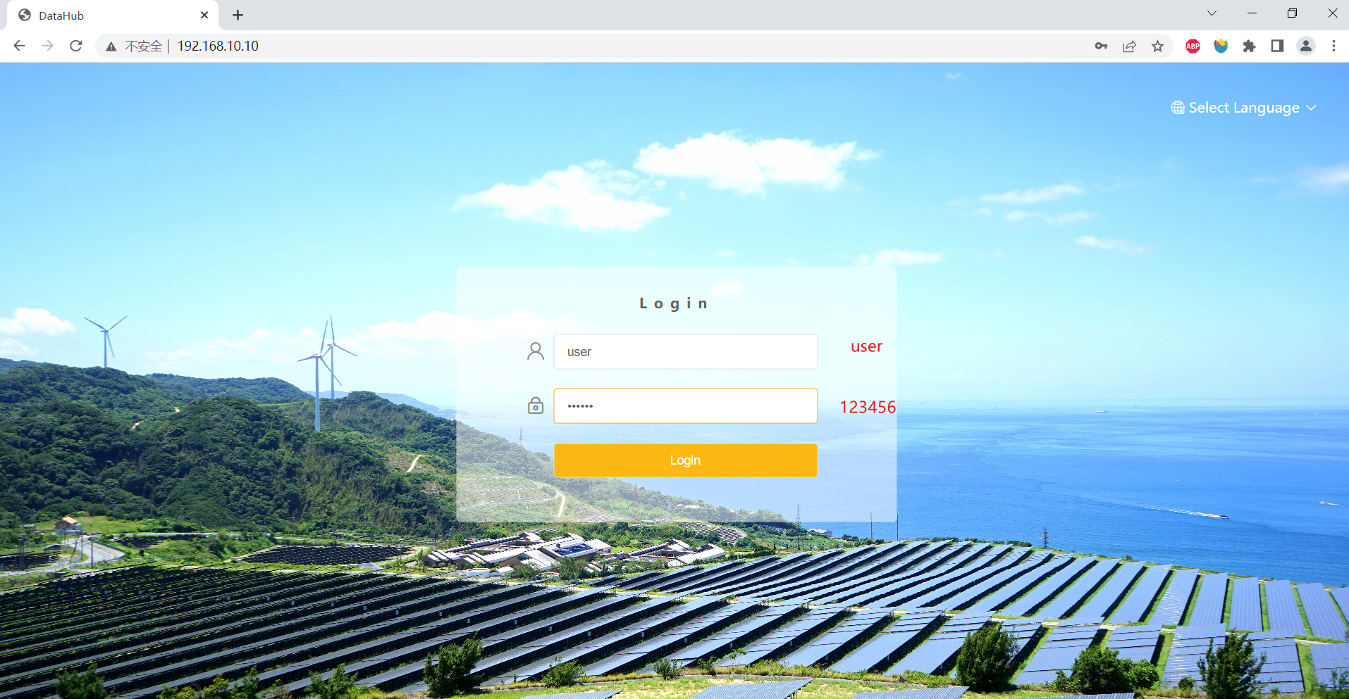 3.Geben Sie Konto und Passwort ein, Konto: Benutzerpasswort: 123456, klicken Sie auf Anmelden.