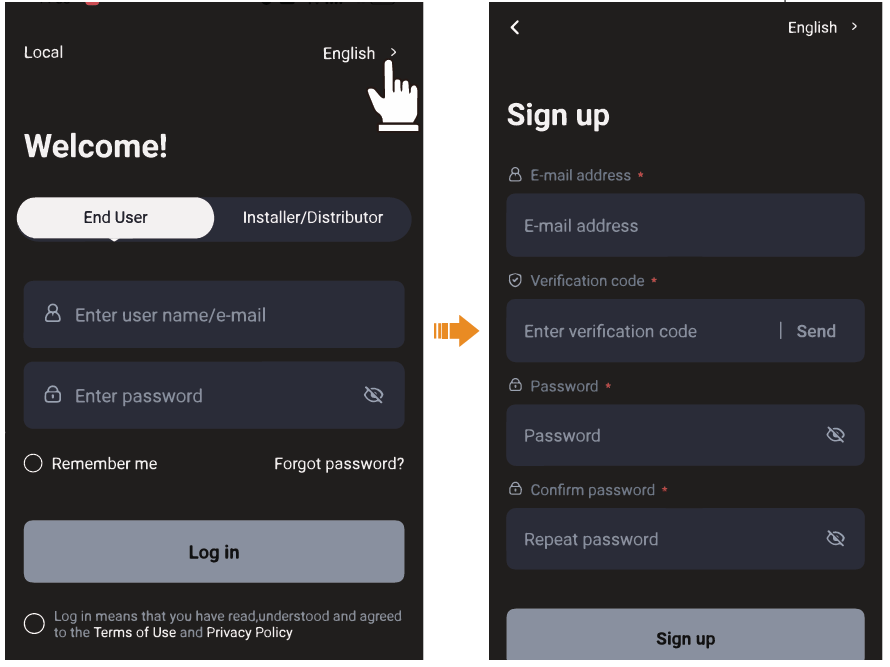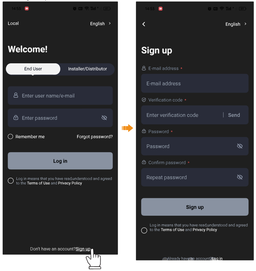 Passaggio 4: inserisci l'e-mail di registrazione, inserisci il codice di verifica e inserisci la password per creare l'account.