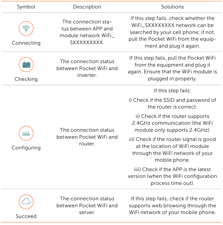 Se la configurazione WiFi non riesce, controllare la tabella seguente per diagnosticare e cercare soluzioni.