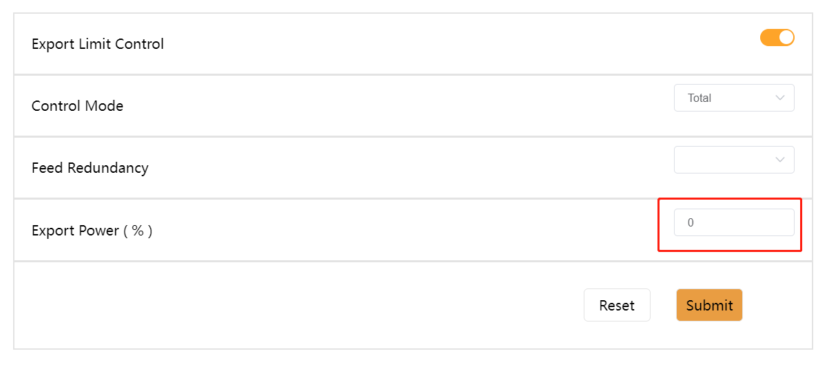 Spento: 1% -- Indica che quando il carico è stabilizzato, la potenza di immissione oscilla tra il ±1%. L'energia di immissione potrebbe non essere completamente 0, ma l'inverter preleverà meno energia dalla rete.