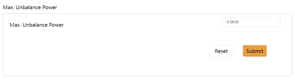 Se il sistema ha un caricabatterie EV monofase collegato, mentre la rete locale non consente lo squilibrio di potenza, il cliente può impostare qui la potenza massima di squilibrio per limitare la potenza di squilibrio trifase.