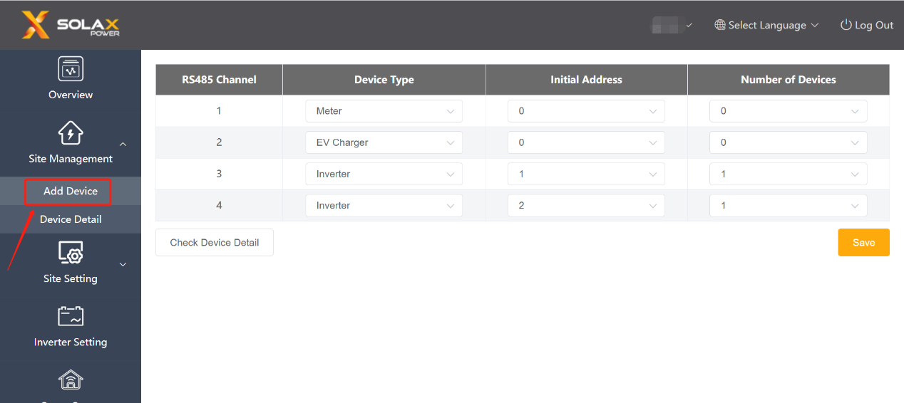Se il DataHub ha un caricabatterie EV collegato, l'utente può impostare qui la corrente limite dell'interruttore principale. Il DataHub può confrontare la corrente GCP (Grid Connection Point) del sistema in tempo reale con questo valore per controllare dinamicamente la corrente del caricabatterie EV, in modo che il valore del sistema non superi il limite dell'interruttore principale.