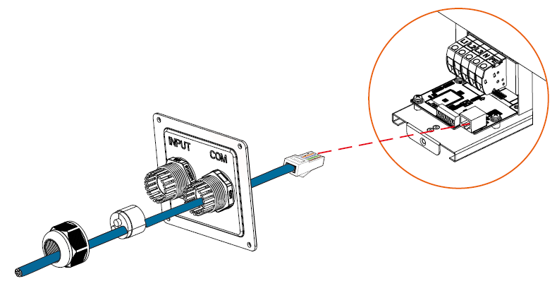 1) Per X1-Hybrid G4 e X3-Hybrid G4, collegare direttamente l'altra estremità del cavo di comunicazione alla porta corrispondente. Collegare il contatore/TA alla porta "Meter/CT" dell'inverter.