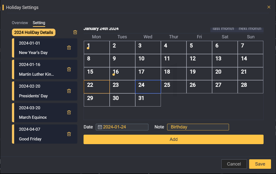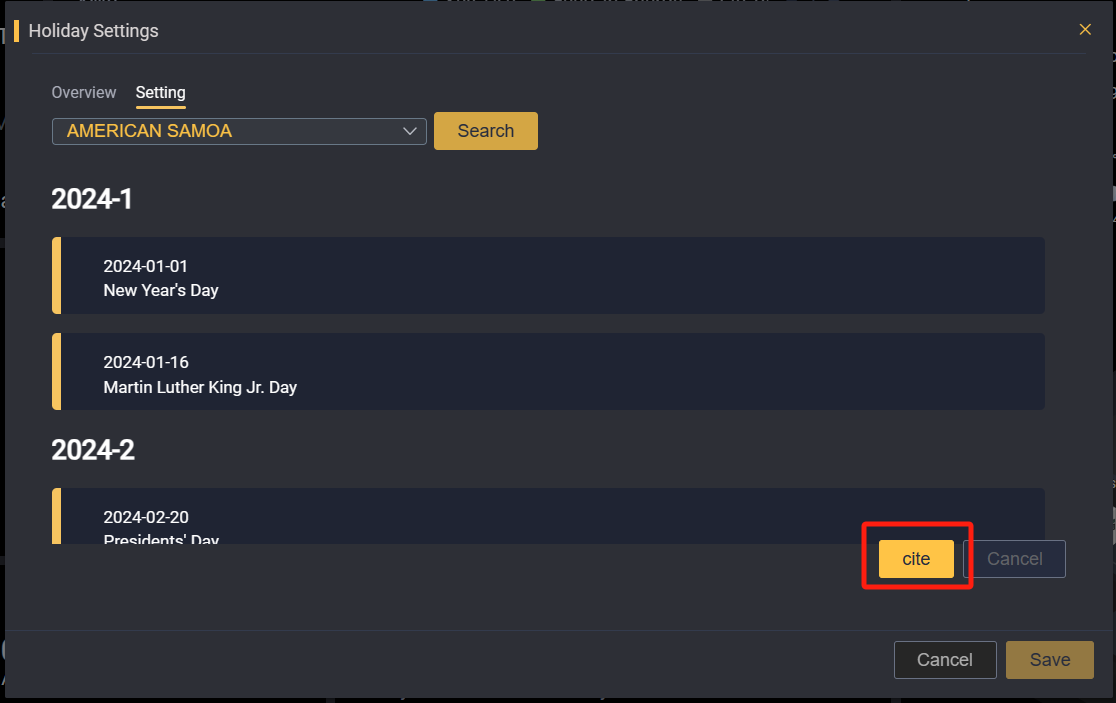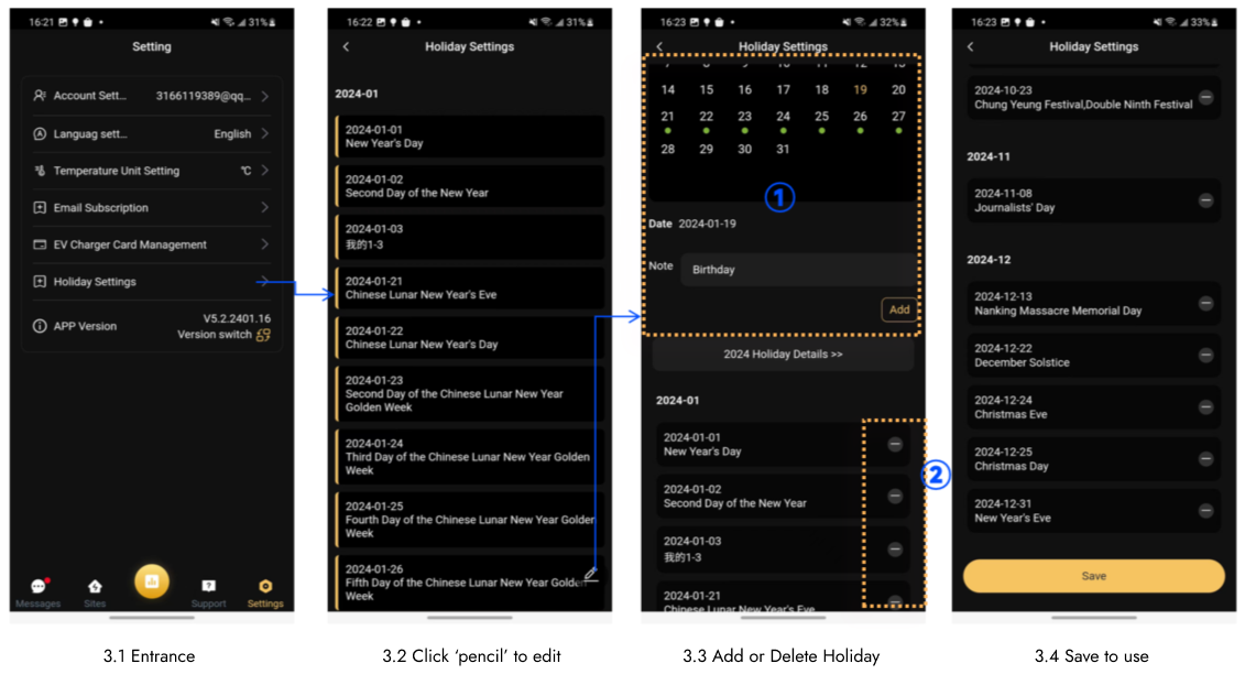 3.5 Elimina o aggiungi regolazioni in base alla vacanza corrente, fai clic su Salva per salvare, quindi puoi citarla nelle regole TOU