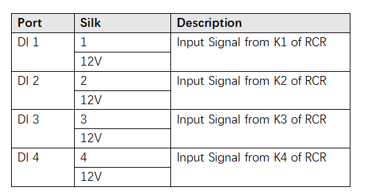 (1) Sul display D1, D2, D3, D4 della porta DI, verde punto significa che il corrispondente K1-K4 di RCR è chiuso.