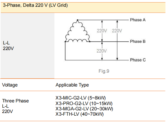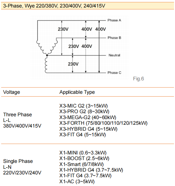 L'alimentazione comunemente fornita è a 3 fasi Wye 220/380V come Fig. 6. Tuttavia, ci sono altri tipi speciali di alimentazione di rete che sono anche diversi in America Latina.