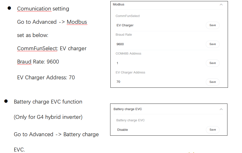Il caricabatterie per veicoli elettrici deve comunicare con l'inverter tramite RS485, non tutti gli inverter supportano questa funzione. L'elenco degli inverter supportati è il seguente: