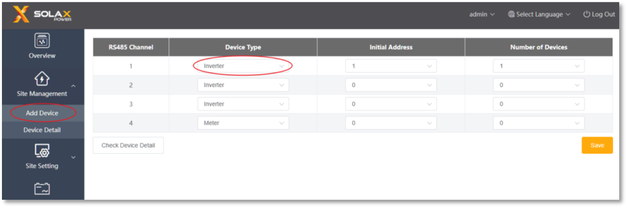 2. Aggiungere il tipo e la quantità di inverter corretti tramite "Aggiungi dispositivo"