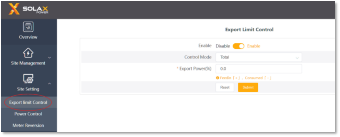 “Totale": Il limite del sito è la potenza totale di esportazione (la produzione combinata meno il consumo combinato) su tutte le fasi combinate. La corrente inversa su una fase conterà come potenza negativa e può compensare un'altra fase.
